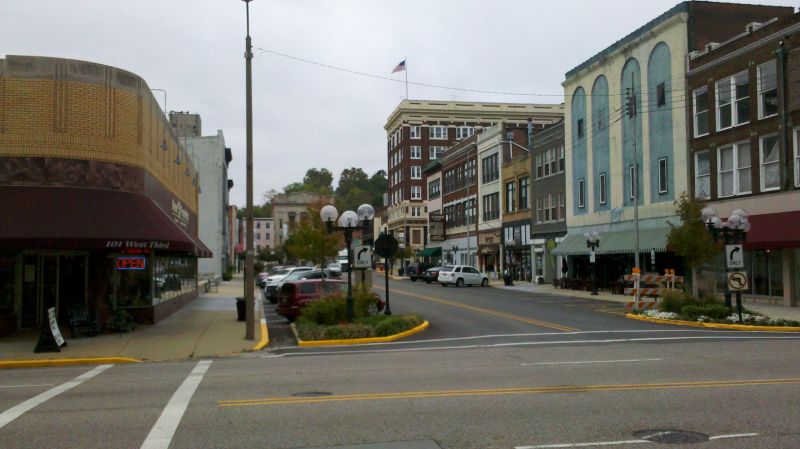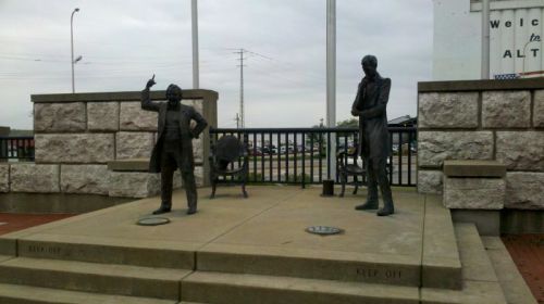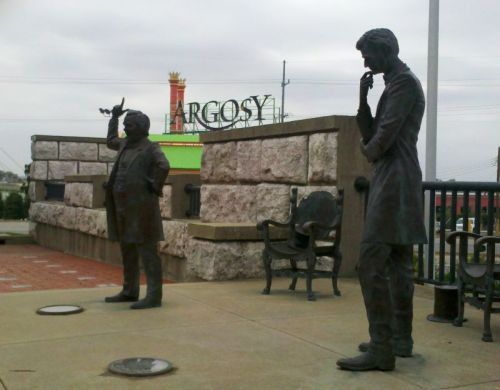 Alton is blue, blue collar, but trying hard. Downtown is sort of fixed up and there are some good restaurants. The waterfront is dominated by the giant Argosy casino. Gambling took its normal course here — it was supposed to be a way to support the riverboats, then they decided the riverboats could just tie up for the gamblers, then it was okay if the casino’s just had a riverboat theme, now it’s “what the hell, they can do anything they want since they are the only things around here making money.”