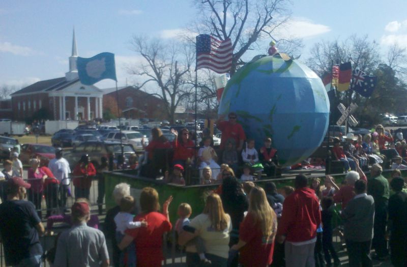 Nice float by the Methodists, but the REALLY BIG church in the background is the First Baptist