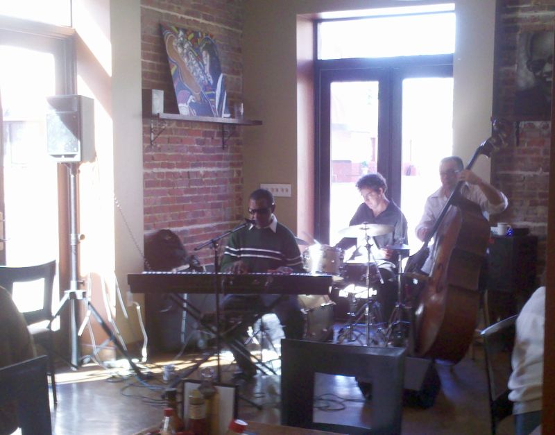 Sunday brunch at 5 Sisters Blues Cafe. Blind blues pianist is a bit of a cliche, but he was good!